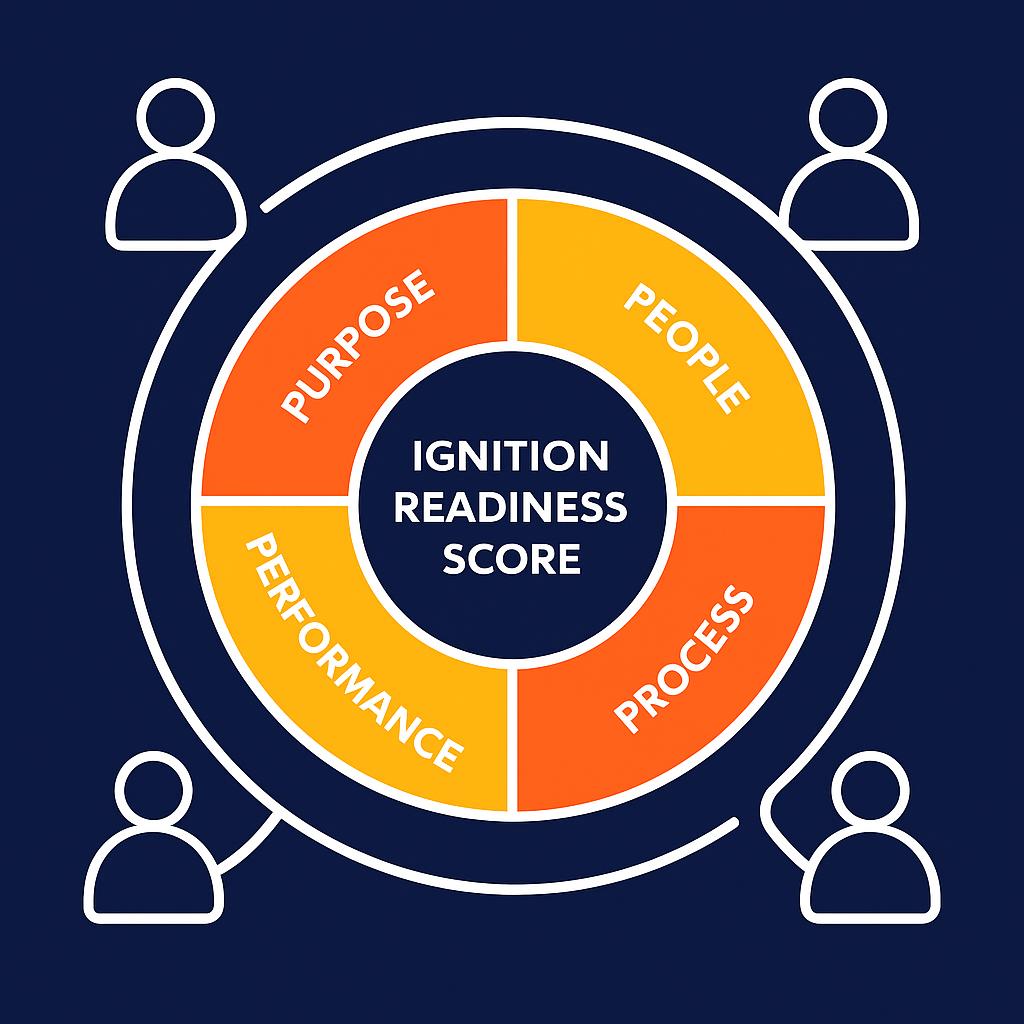 Take the 10-minute assessment to get your personalized Ignition Readiness Score™ — insight into how well your organization aligns purpose, people, process, and performance to achieve results that last. Achieve the ROI on Why™.